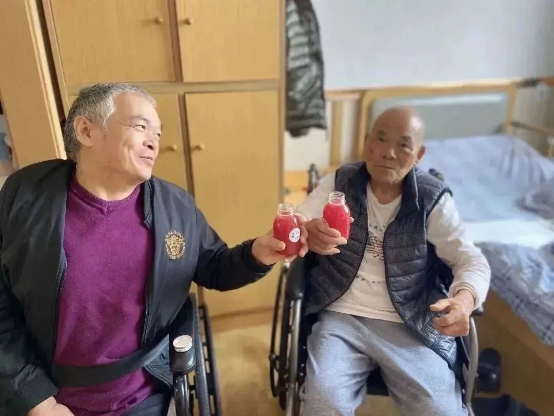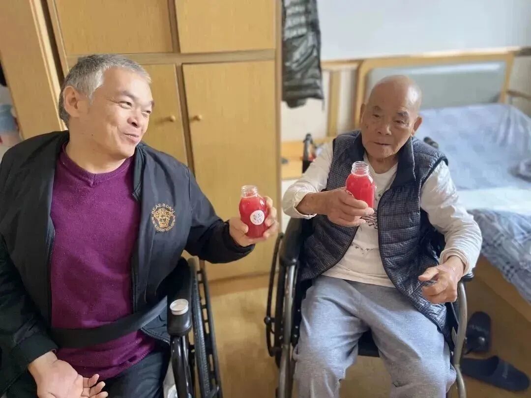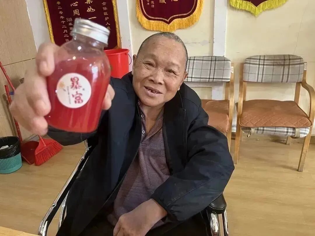 甜蜜蜜你笑得甜蜜蜜,好像花儿开在春风里···社工们给长者们准备了,甜蜜蜜的果汁。