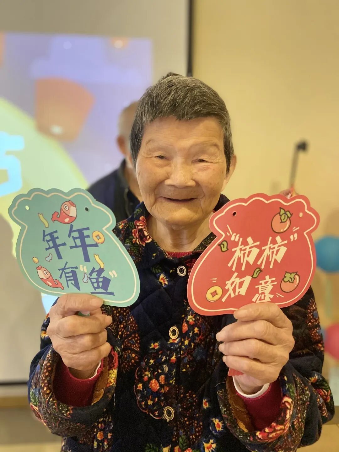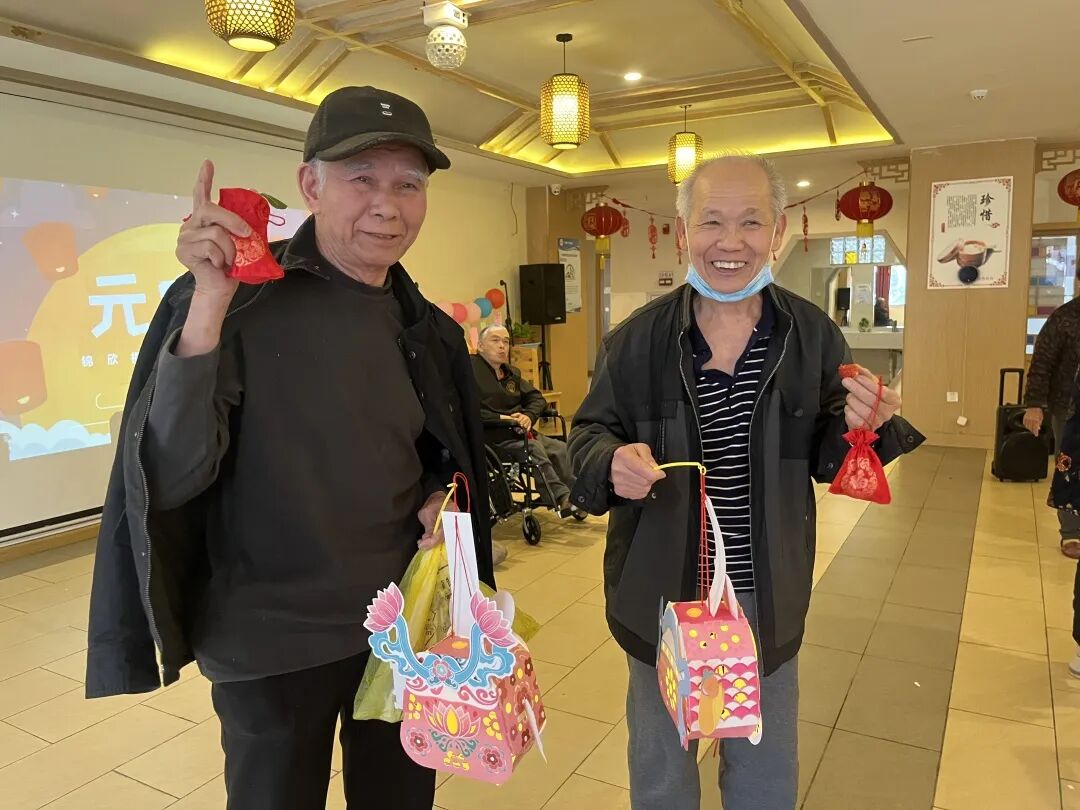 灯笼,自古以来就象征着阖家团圆、事业兴旺、红红火火,意味着幸福、光明、活力、圆满与富贵。和长者们一起动手把灯笼拼起来,在一片欢声笑语中,一个个精致的“兔子灯笼”在大家手上诞生,长者们纷纷展示着自己的灯笼,每个人脸上都洋溢着开心的笑容。