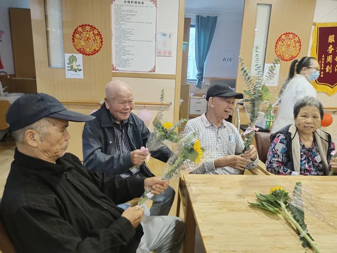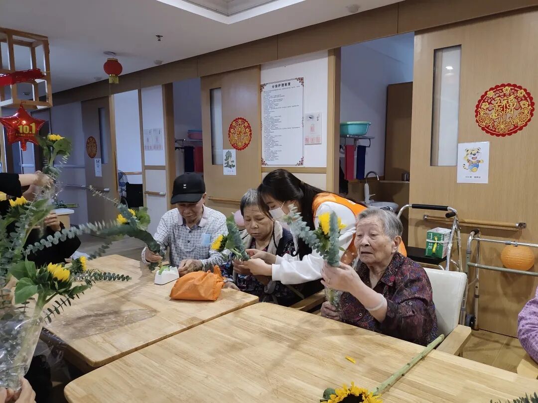 还记得,蒋奶奶初来女儿家时,性格比较内向,也不擅长与人交流,而现在蒋奶奶却能准确说出,楼层每一位老人和工作人员的特点。每次有活动时,蒋奶奶也会第一时间来帮忙。茶余饭后到房间里找奶奶聊天时,奶奶总是会握着社工的手说:“有你们真好呀,谢谢你们的关心~”