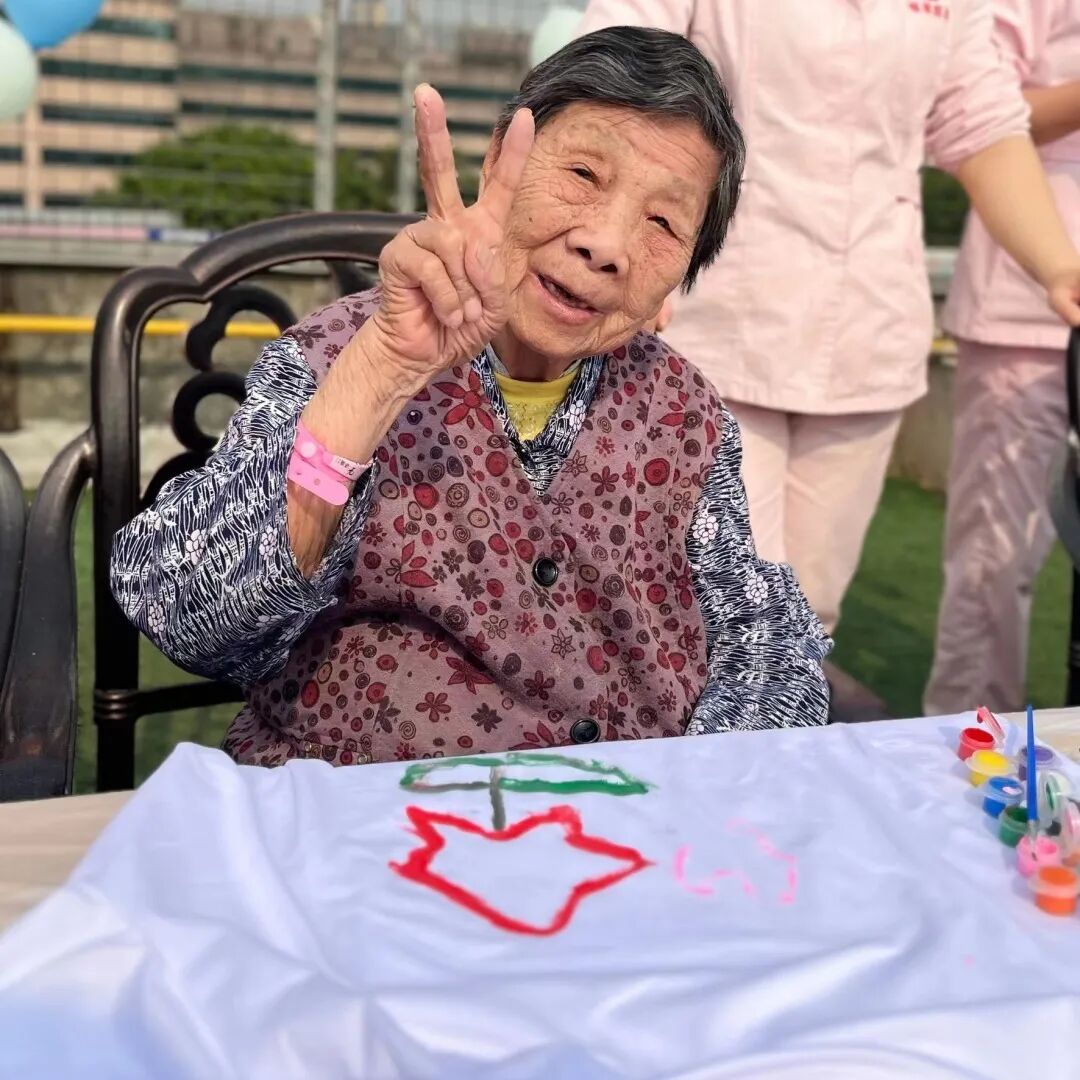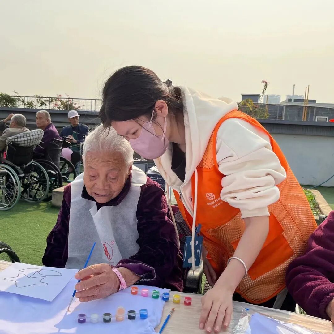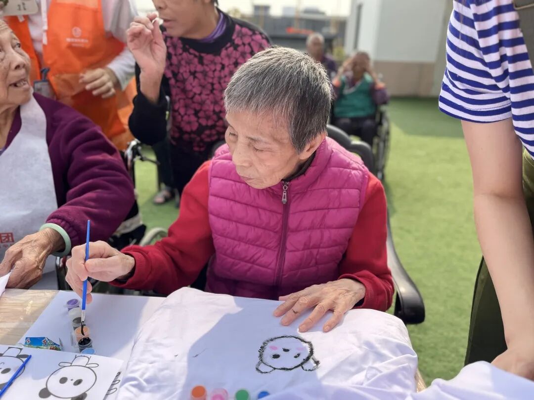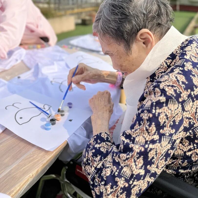 虽然阳光很强烈,但奶奶们的热情是丝毫不减。我们的工作人员也是非常的有耐心在现场指导我们的奶奶们进行绘画。