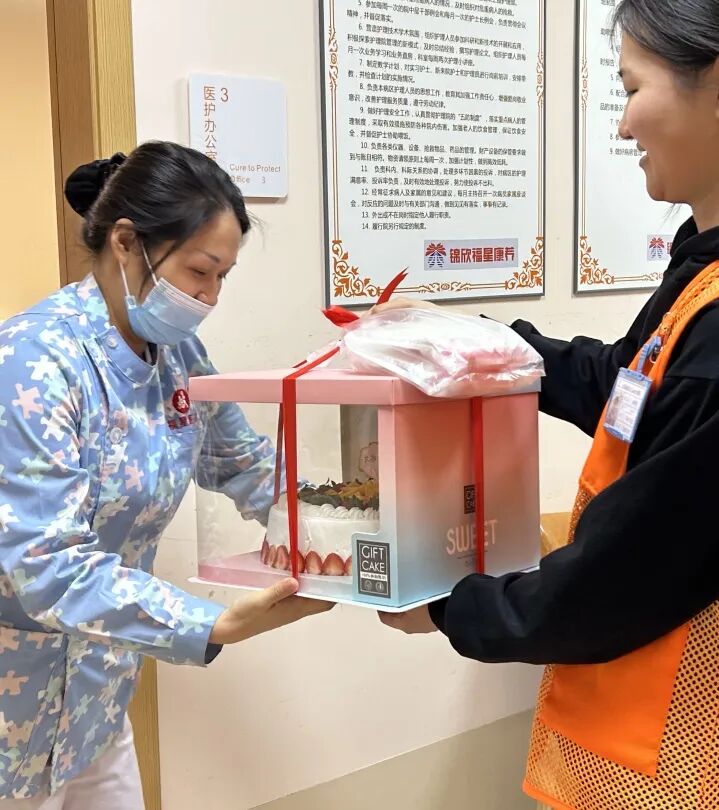 鲜花肯定要配上蛋糕啦,这不,我们的工作人员还特意为员工定制了妇女节日蛋糕。