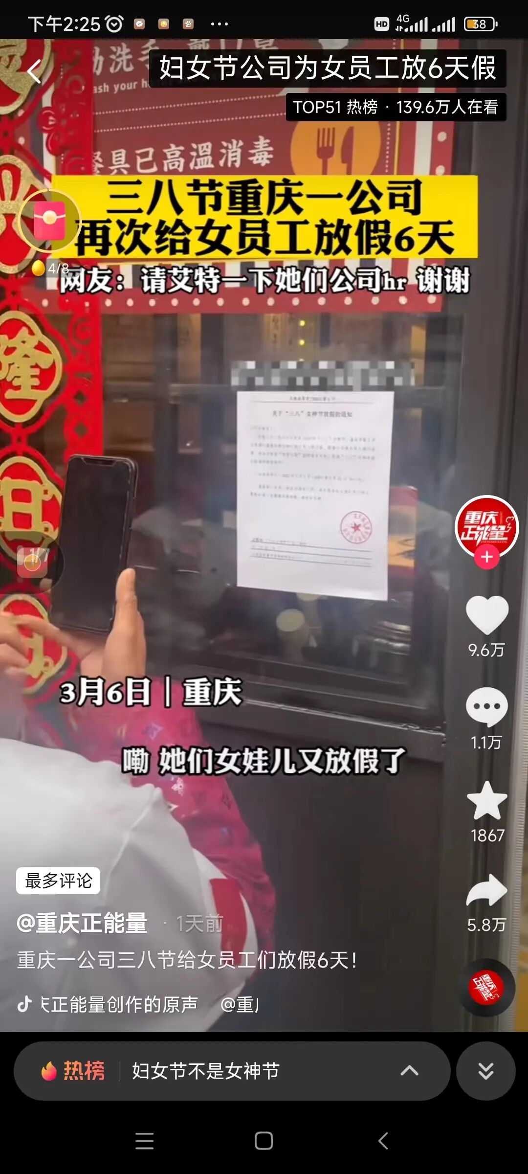 妇女节的这天,抖音上到处都能刷到类似的视频。屏幕前的我们也会不禁投去羡慕的目光。